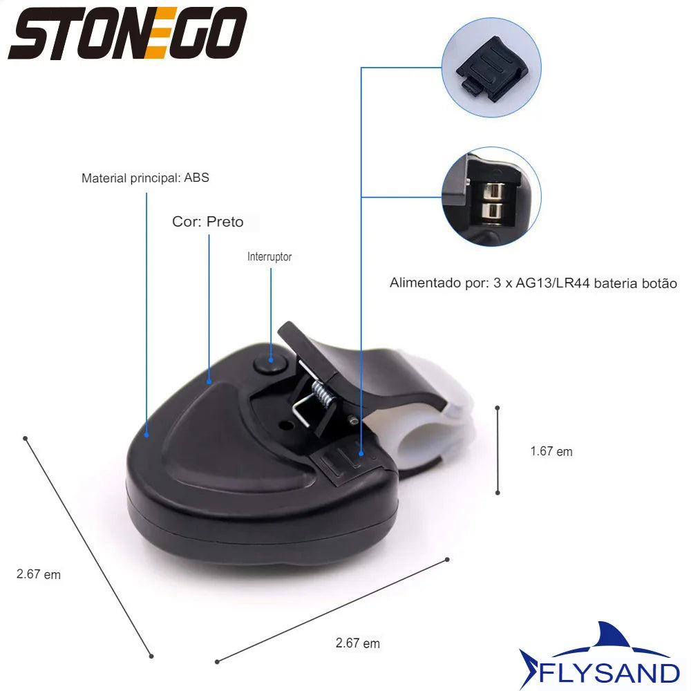- Perfeito para pesca noturna, devido ao alarme luminoso integrado que ilumina! Assim, você pode usar o Stonego Alarm a qualquer hora do dia.