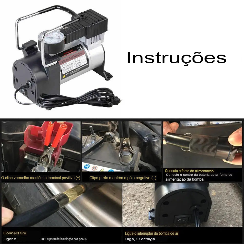 O inflador está equipado com manômetro de verificação de pressão. Alimentado por seu carro de 12V.